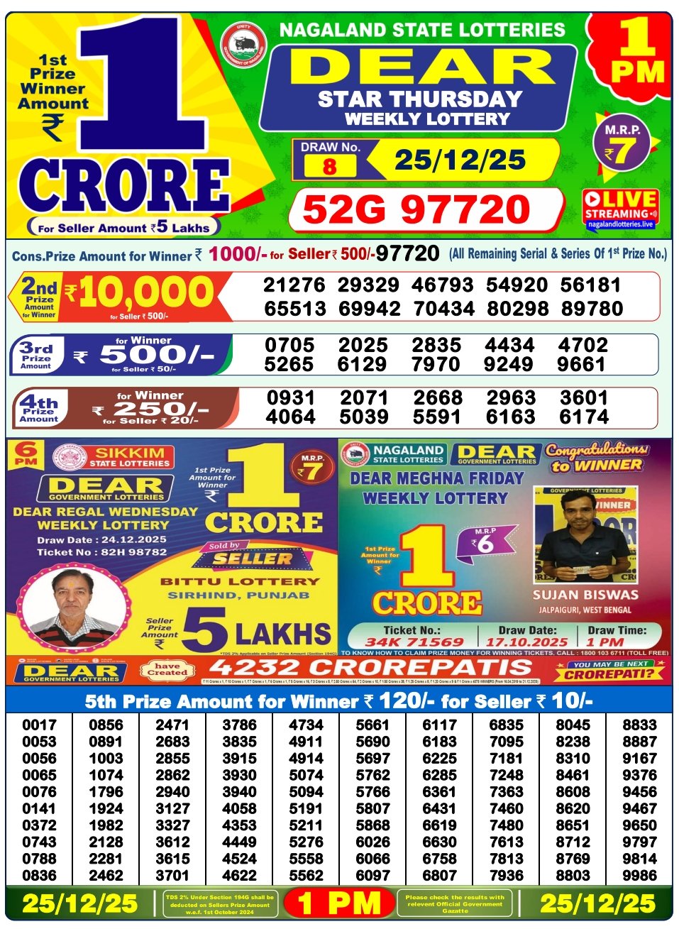 Lottery Sambad 25.12.2025 Result Today 1 PM, 6 PM, 8 PM Nagaland State Lottery LIVE