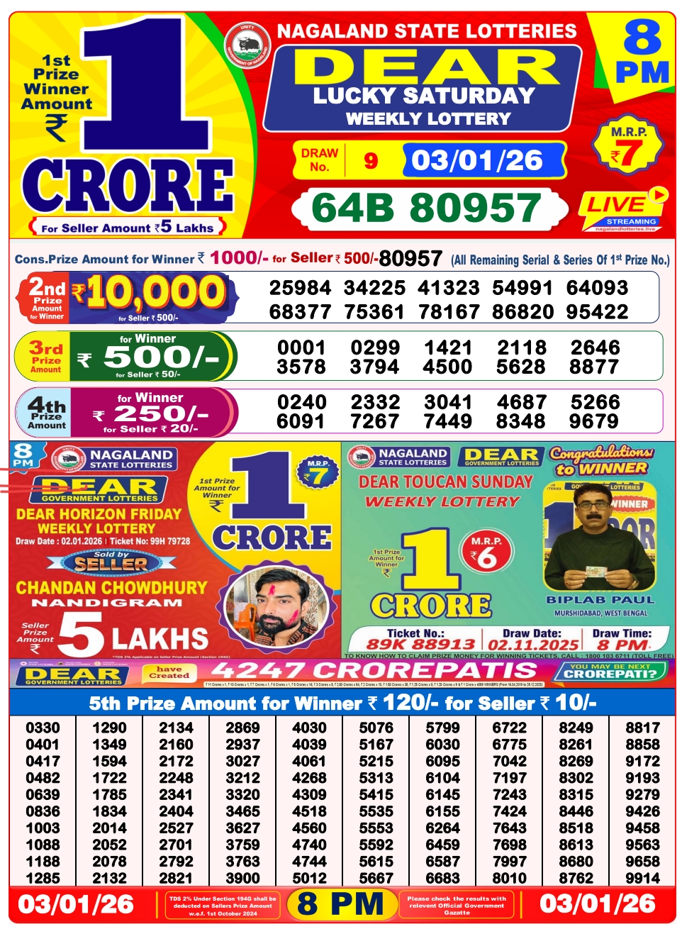 Nagaland Lottery offers attractive prizes. The general prize structure is: