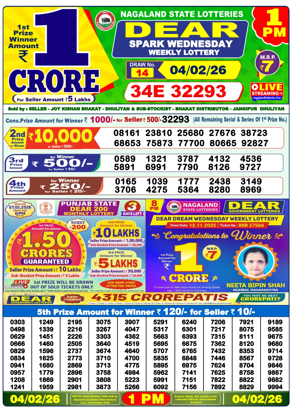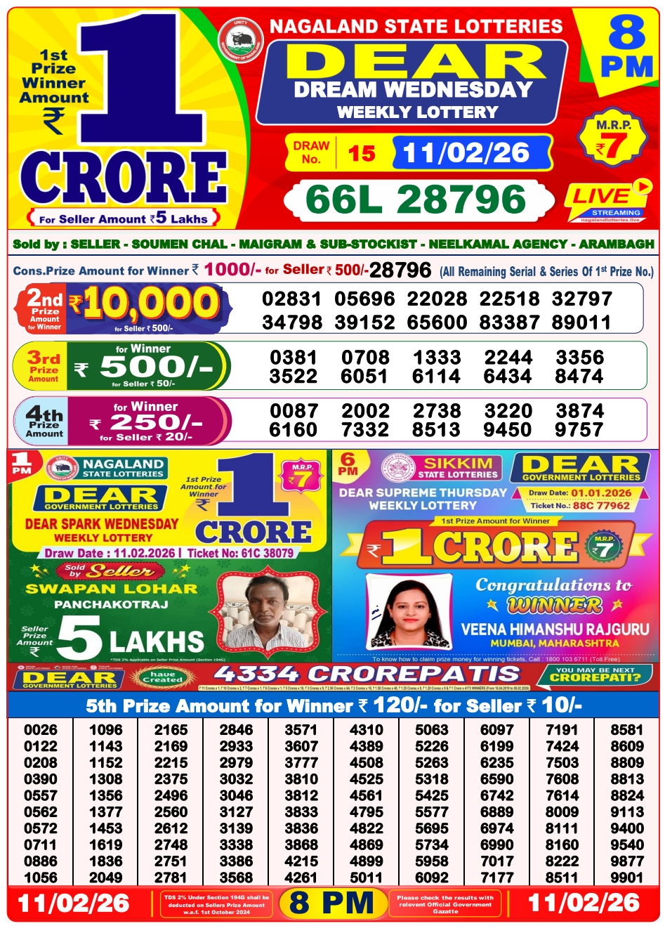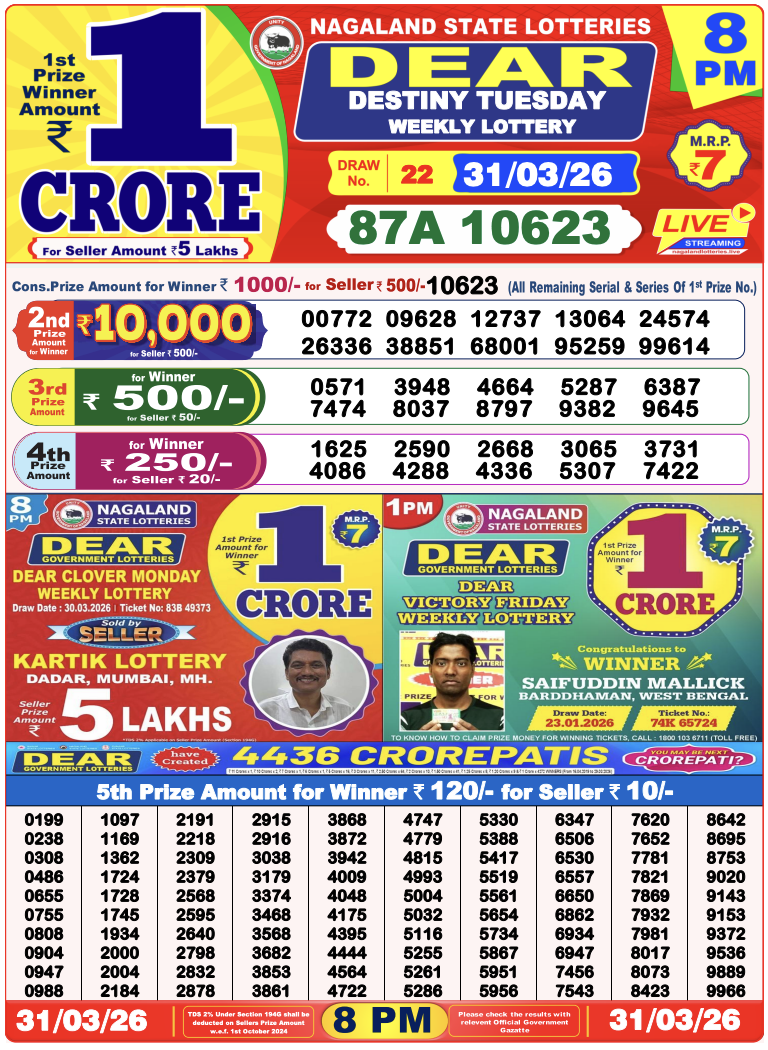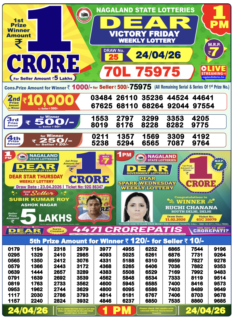 Stay connected with nagalandlotterysambad.com to check today’s 1 PM, 6 PM, and 8 PM results.