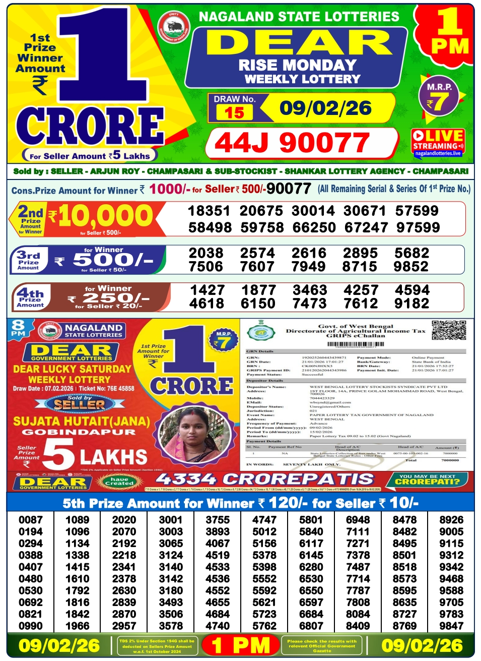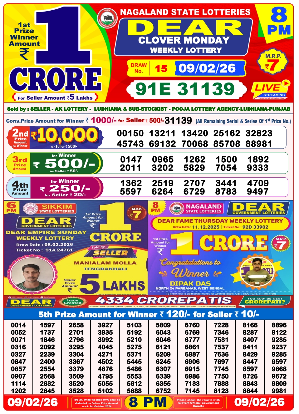 Nagaland Lottery offers attractive prizes. The general prize structure is: