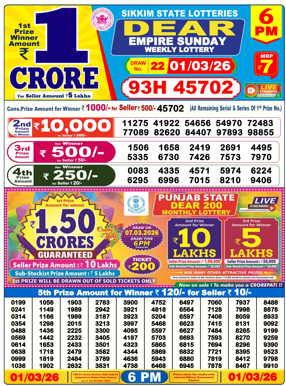 - 1st Prize – ₹1 Crore