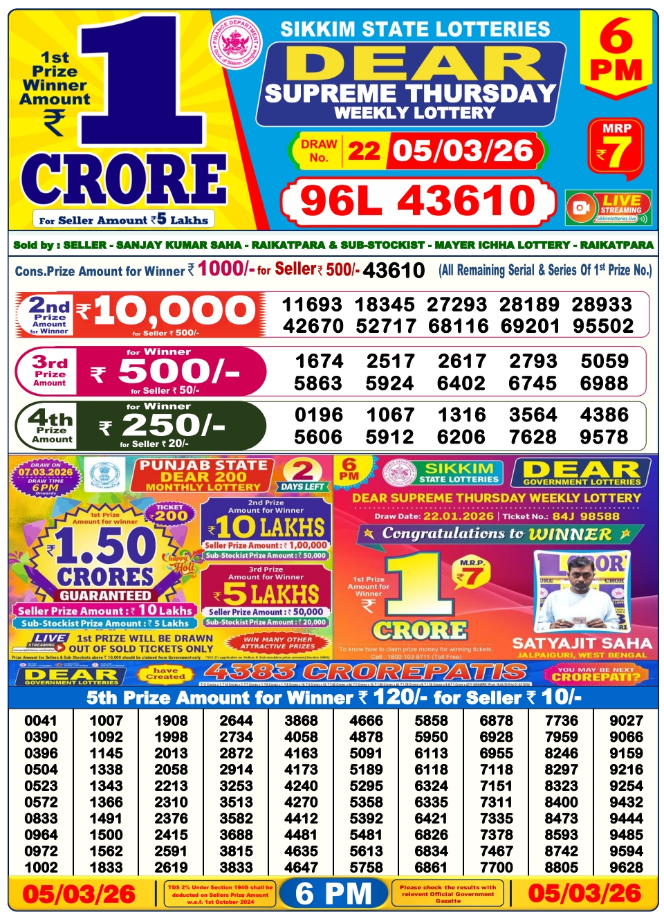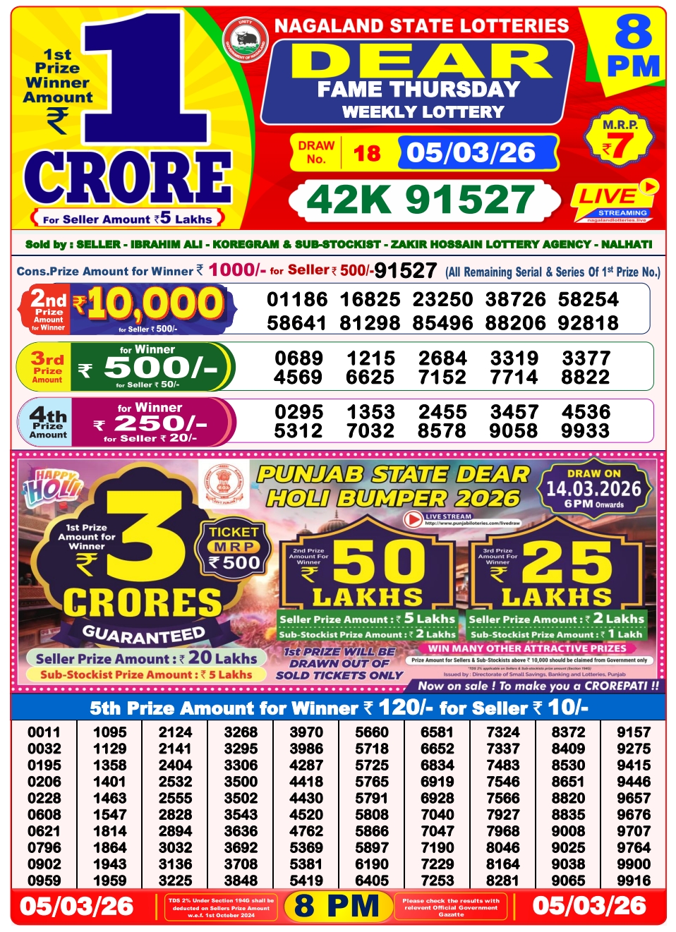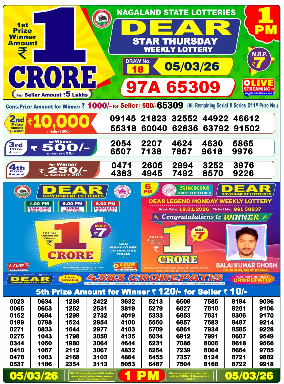 Lottery Sambad 5.3.2026 Result Today 1 PM, 6 PM, 8 PM Nagaland State Lottery LIVE