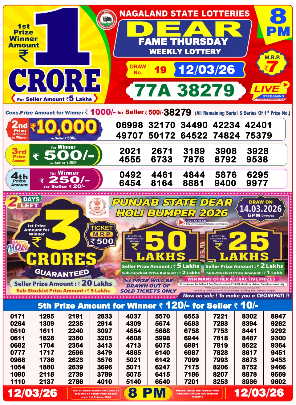 Lottery Sambad 11.3.2026 Result Today 1 PM, 6 PM, 8 PM Nagaland State Lottery LIVE