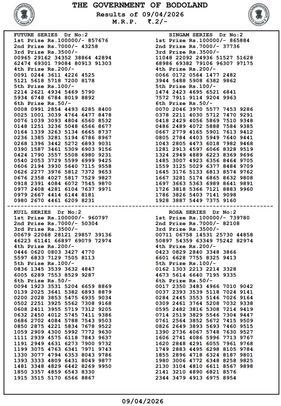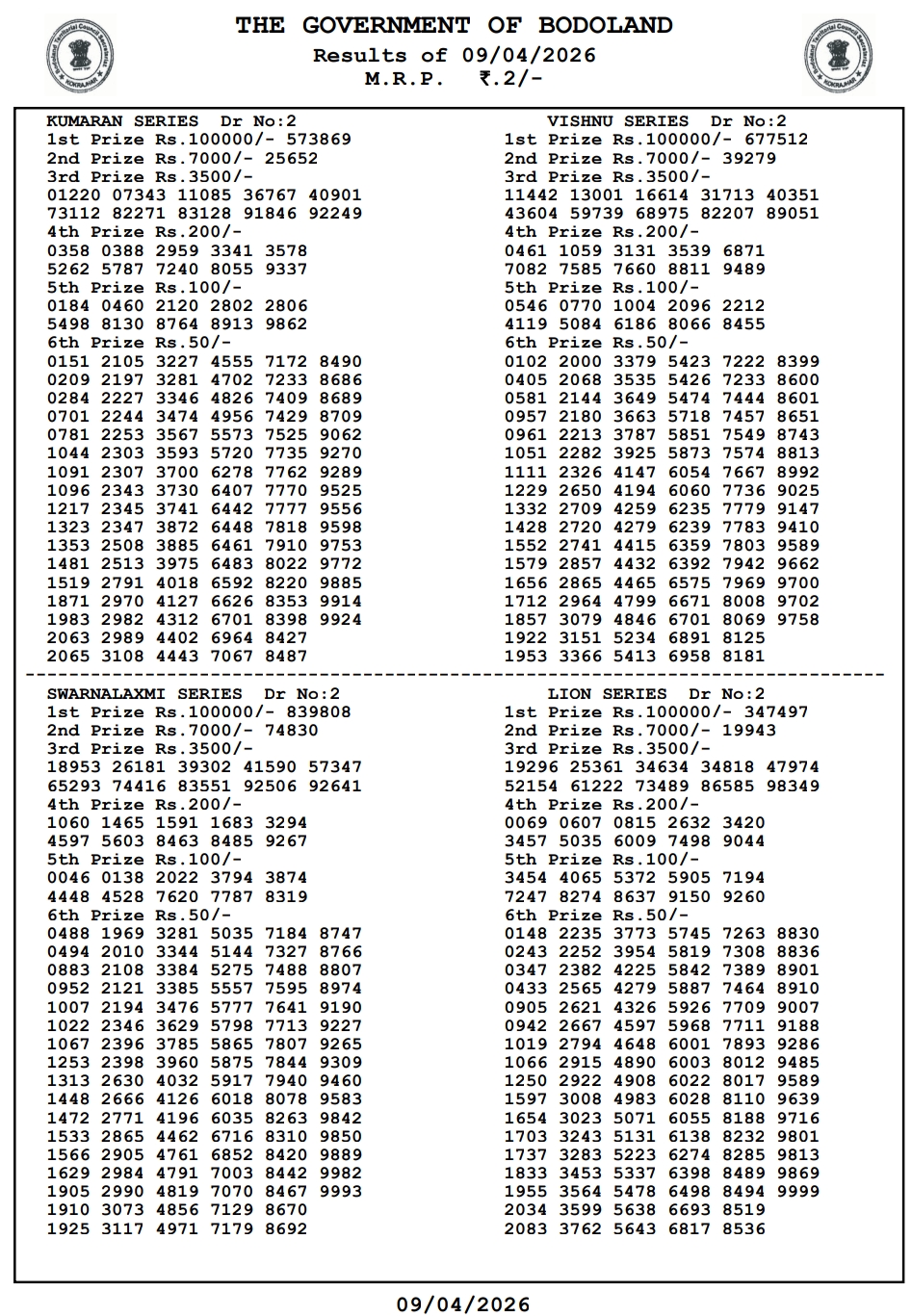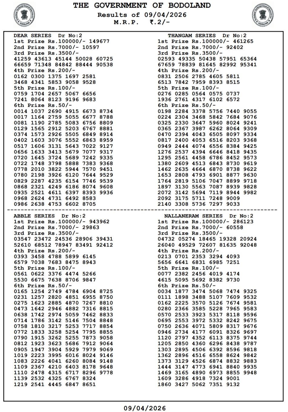Bodoland Lottery Result 9.4.2026 Today Assam State Lottery 12 PM 3 PM 7 PM: Here you can find Bodoland Lottery Result Today, Bodoland Lottery Result, Bodoland Lottery Result, Assam State Lottery Sambad Result, Bodoland Lottery Singam Kuil Result, Bodoland Lottery Rosa Deer Result, Bodoland Lottery Thangam Nallaneram Result, Bodoland Lottery Kumaran Vishnu Result, Bodoland Lottery Swarnalaxmi Result, Bodoland Lottery Vairam Result, Bodoland Lottery Mani Result, Bodoland Lottery Lion Live Result, Bodoland Lottery Result 12 PM 3 PM 7 PM, Assam State Lottery Result, Bodoland Lottery Draw List, Bodoland Lottery Evening Draw List, Bodoland Lottery Sambad Night Draw List, Bodoland Lottery Sambad Live Results, Dear Bodoland Lottery Results are Below.