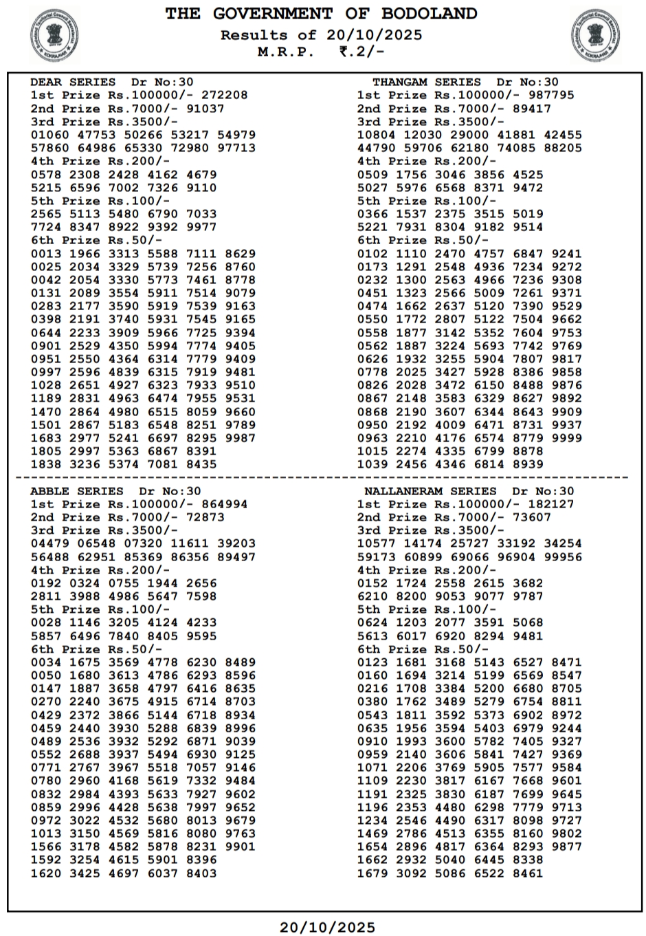 Bodoland Lottery Result’s Today 21.10.2025 Overview