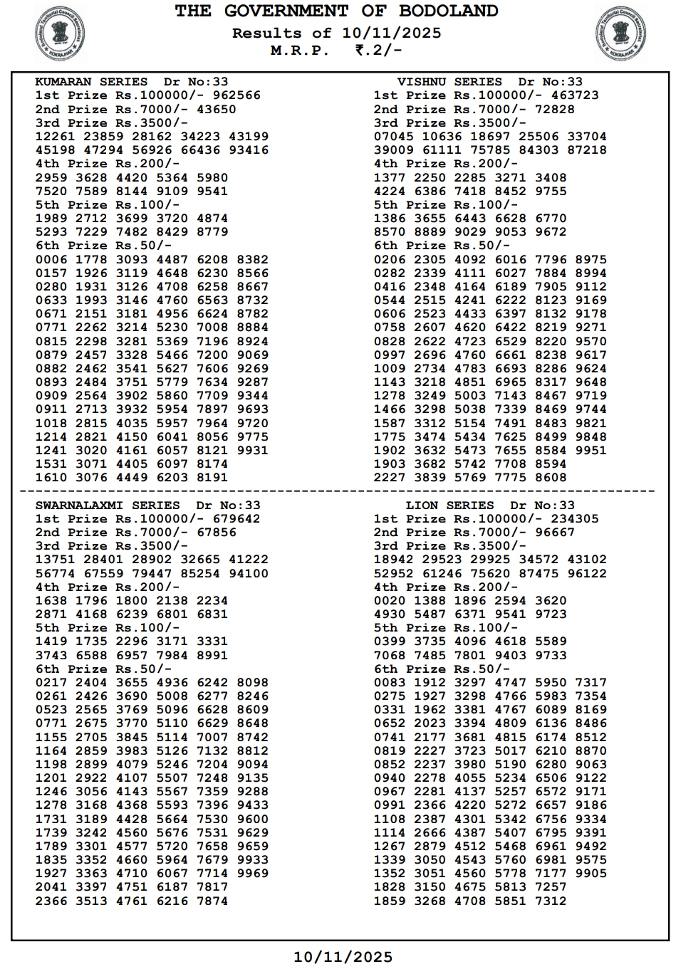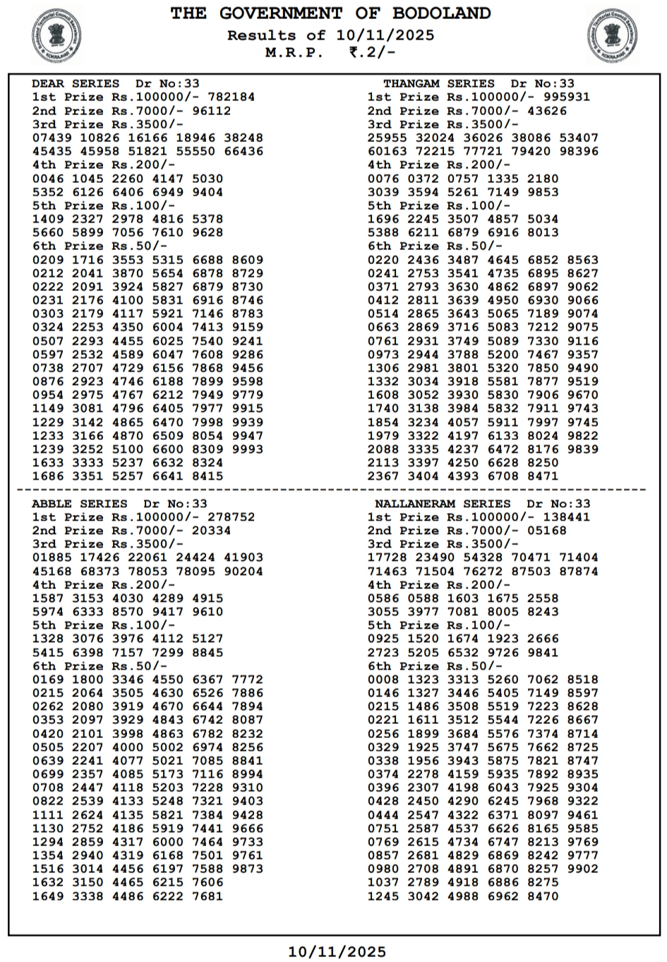 Bodoland Lottery Result 10.11.2025 Today Assam State Lottery 12 PM 3 PM 7 PM: Here you can find Bodoland Lottery Result Today, Bodoland Lottery Result, Bodoland Lottery Result, Assam State Lottery Sambad Result, Bodoland Lottery Singam Kuil Result, Bodoland Lottery Rosa Deer Result, Bodoland Lottery Thangam Nallaneram Result, Bodoland Lottery Kumaran Vishnu Result, Bodoland Lottery Swarnalaxmi Result, Bodoland Lottery Vairam Result, Bodoland Lottery Mani Result, Bodoland Lottery Lion Live Result, Bodoland Lottery Result 12 PM 3 PM 7 PM, Assam State Lottery Result, Bodoland Lottery Draw List, Bodoland Lottery Evening Draw List, Bodoland Lottery Sambad Night Draw List, Bodoland Lottery Sambad Live Results, Dear Bodoland Lottery Results are Below.