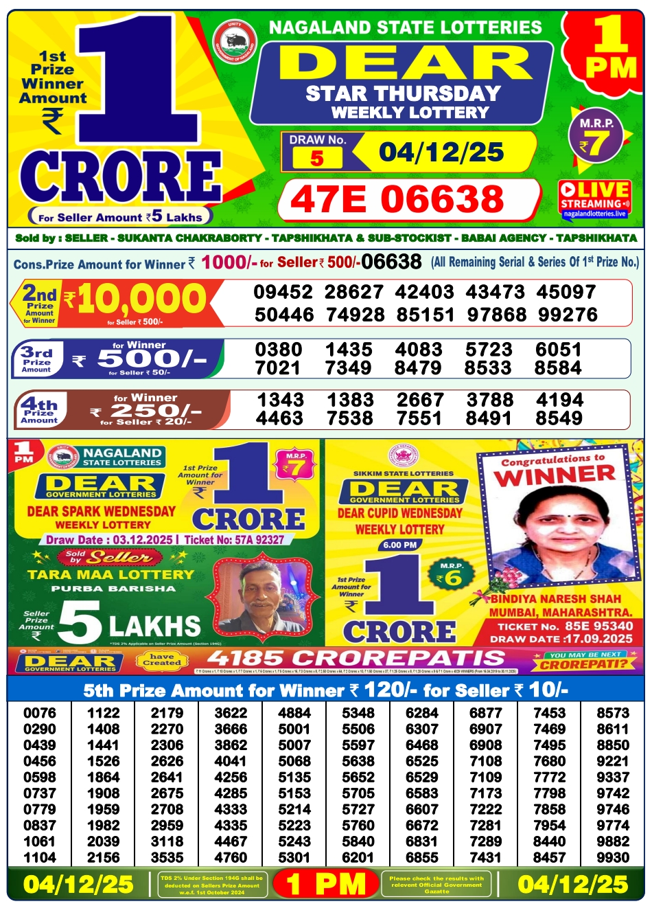 Lottery Sambad 4.12.2025 Result Today 1 PM, 6 PM, 8 PM Nagaland State Lottery LIVE