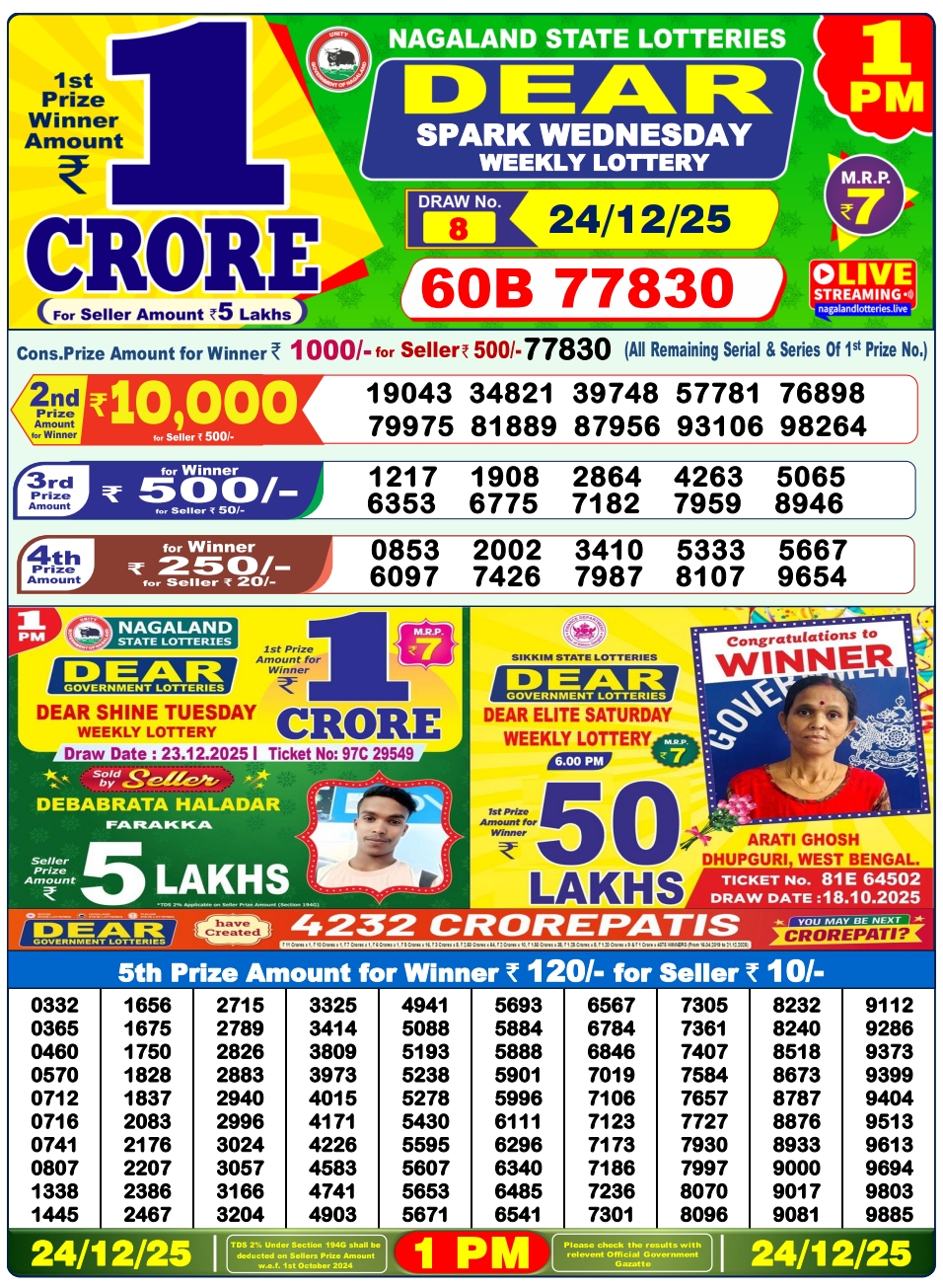 Sikkim State Lottery Sambad Result 24.12.2025 Today: Are you looking for Sikkim State Lottery Result So you are on the right webpage. The result of 1 PM, of Sikkim State Lottery Result is published exclusively on this website. On this website, you can see the lottery Sambad results for almost all of India. We publish updated Sikkim State Lottery results daily here. You can find Sikkim State Lottery results here. The results of the Sikkim State lottery are below. You can just check it or download it in pdf format also. Check below the Sikkim State Lottery Today 1 PM, 6 PM, and 8 PM Result PDF file.