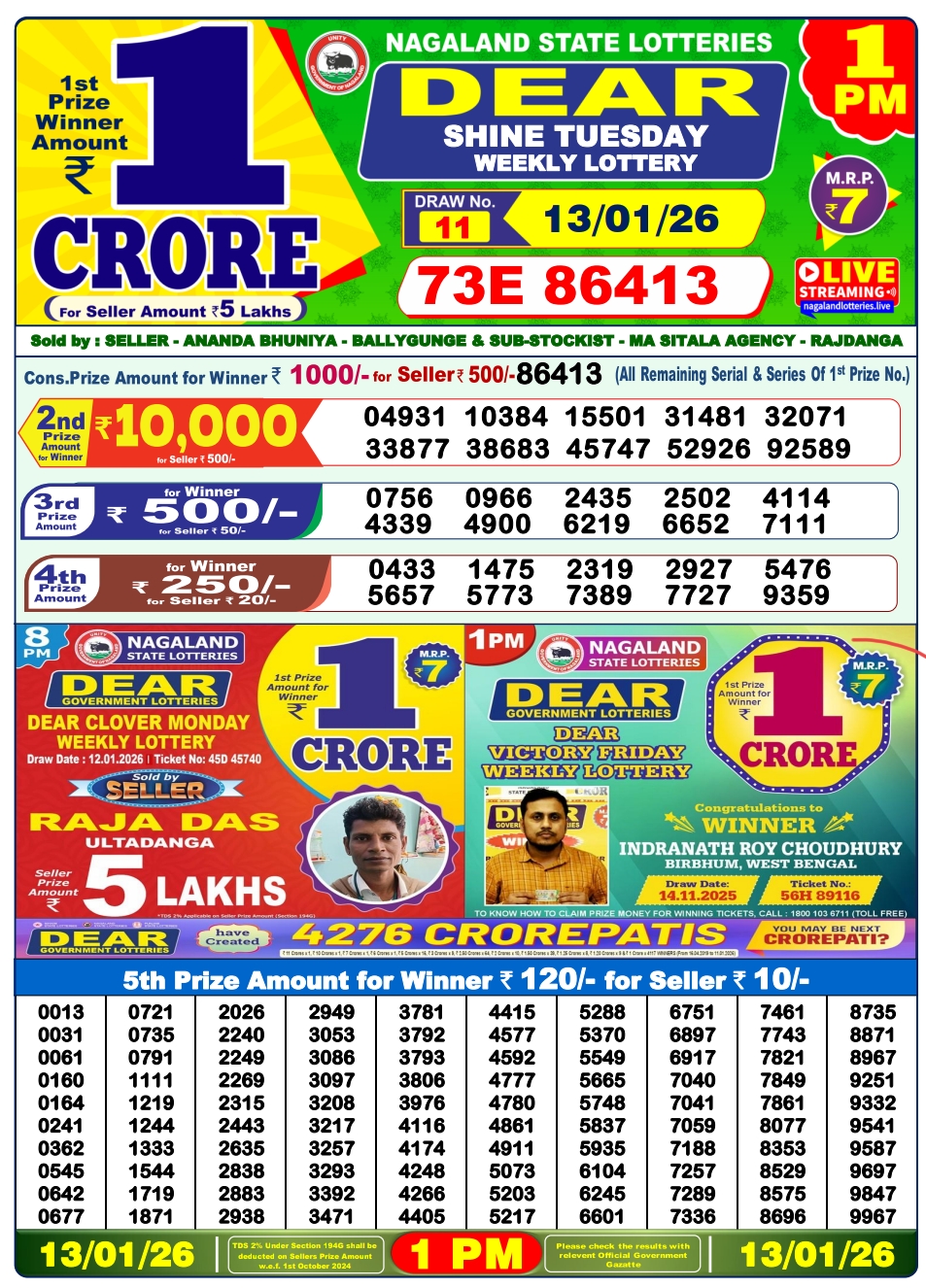 - nagaland state lotteries dear tender morning friday weekly lottery